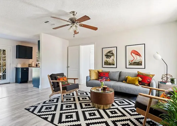 Der Charming East Side Bungalow ist eine ideale Unterkunft für Reisende, die das kreative und lebendige Austin erleben möchten. Mit seinem einladenden Ambiente und modernen Annehmlichkeiten bietet diese Ferienunterkunft sowohl Entspannung als auch Komfort.